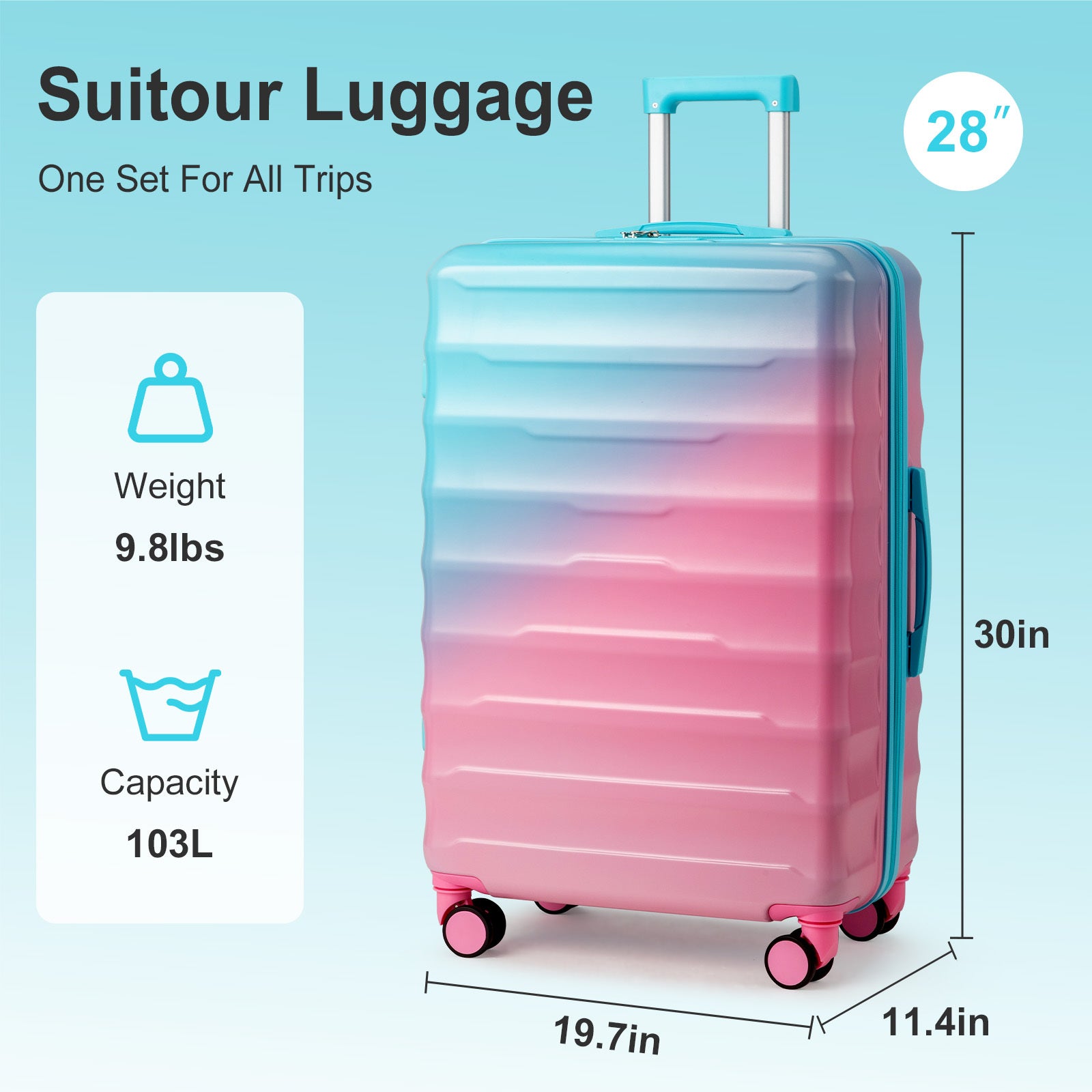Travel in style with the LEADZM Gradient Luggage Set, a durable ABS+PC hardshell collection built for your efficiency, protection, and standout color.