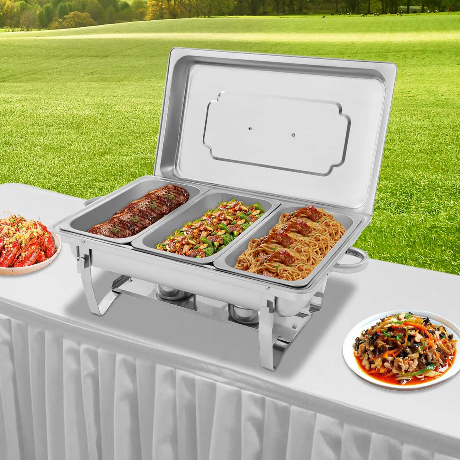 Elevate your event with the Hign-concerned 3-Compartment Stainless Steel Chafing Dish, designed for organized, professional-style food service.
