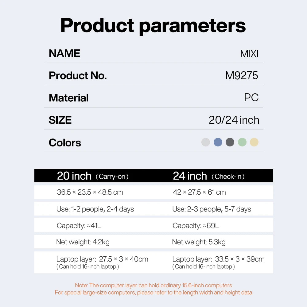 Travel with confidence in the HankeCN Mixi New Design Wide Handle Carry On Luggage (Model M9275), a durable, maneuverable companion designed for everyday travel.