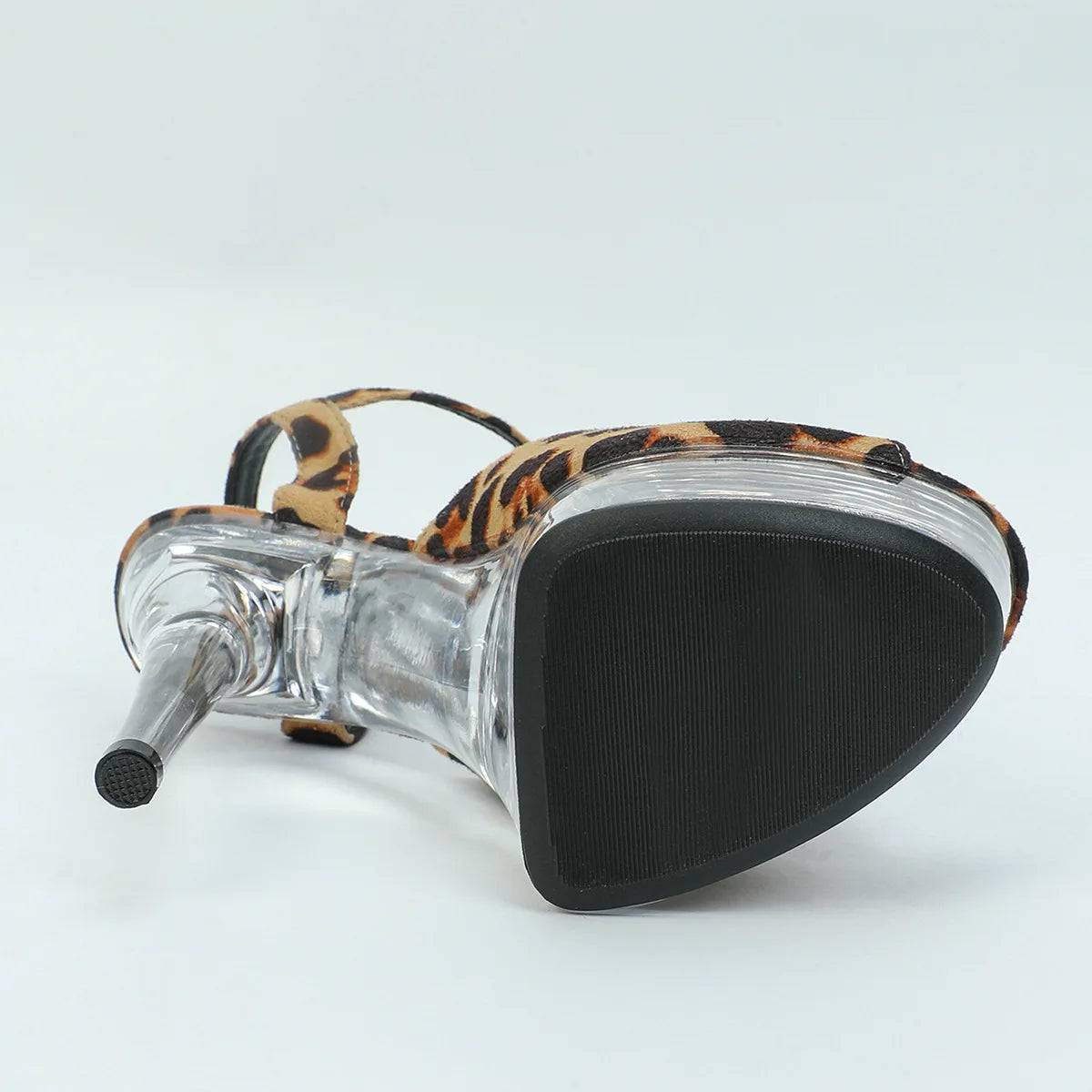 Turn heads with leopard-print allure and sky-high confidence in the Mclubgirl Leopard Sexy Platform Fish Toe Heels Sandals.